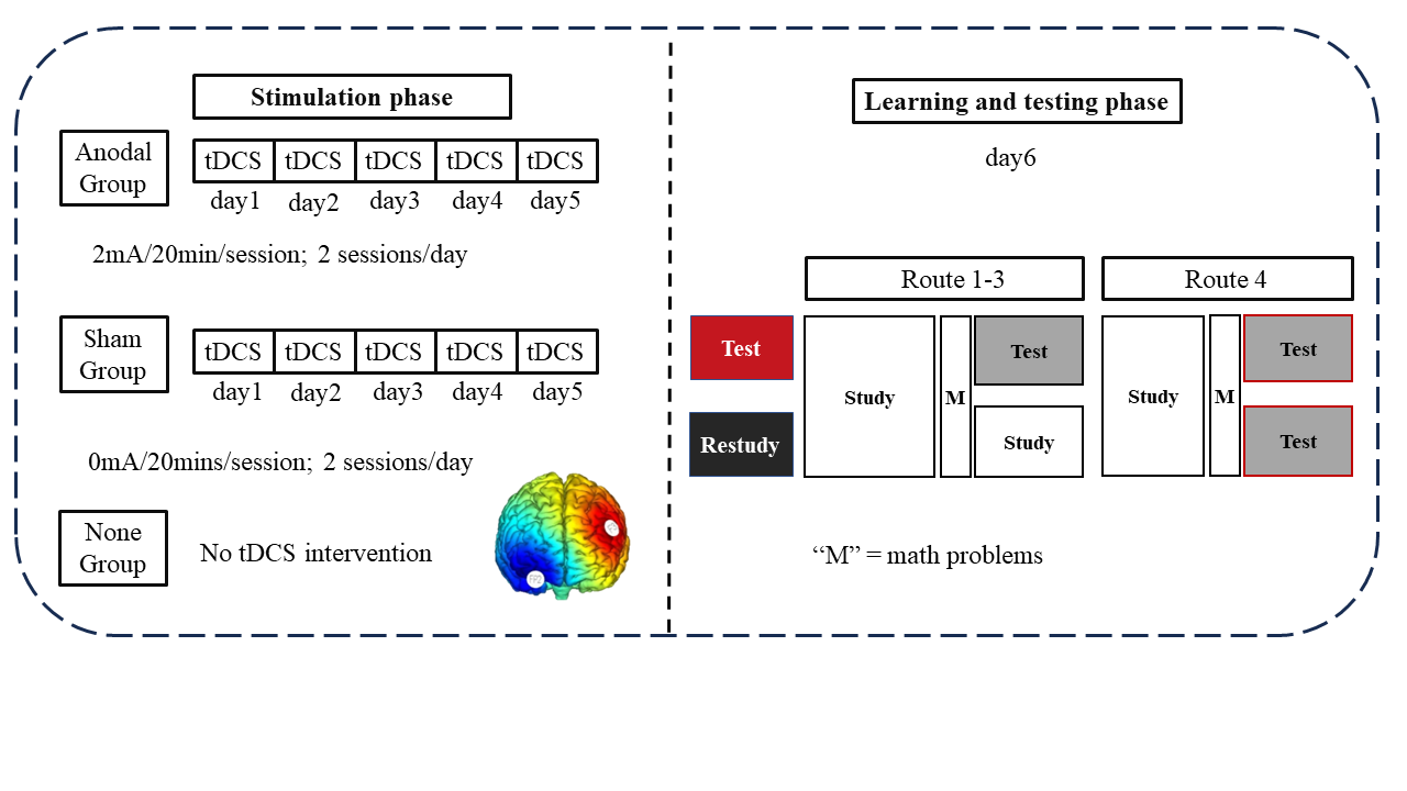 Li, T., Ma, X., Pan, W., & Huo, X. (2024). The impact of transcranial direct current stimulation combined with interim testing on spatial route learning in patients with schizophrenia. Journal of Psychiatric Research,177, 169–176.
