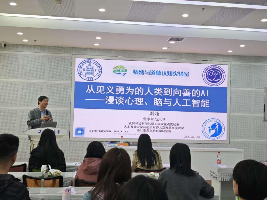 2025年4月17日,应350vip浦京集团官网邀请,北京师范大学认知神经科学与学习国家重点实验室刘超教授为浦京师生作题为《从见义勇为的人类到向善的AI—漫谈心理、脑与人工智能》的学术讲座。本次讲座由350vip浦京集团官网马小凤教授主持,100余名师生参加了本次讲座。