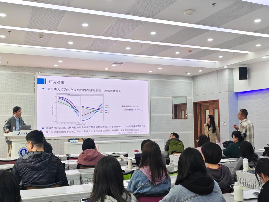刘超教授首先系统介绍了其课题组的前沿研究成果,包括VR情境下见义勇为行为的心理机制、急性应激对第三方惩罚与帮助行为的神经调控机制,以及第三方行为中的复杂动机系统。通过生动的视频演示,刘教授详细阐释了VR技术在行为研究中的创新应用,包括实验设计、研究范式等关键技术环节。