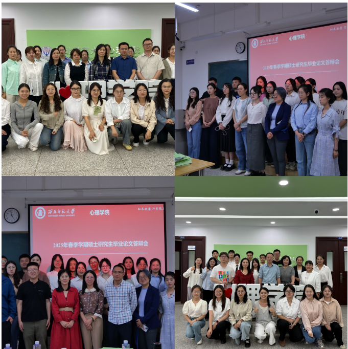 2025年5月17、18、23、24、25日,350vip浦京集团官网组织开展了2025年春季学期硕士研究生毕业论文答辩工作。学院邀请了河南大学李永鑫教授、中国科学院心理研究所古若雷研究员、宁夏大学关荐教授、陕西师范大学段海军教授、浙江大学周吉帆教授、华中师范大学孙晓军教授、福建师范大学张锦坤教师、广州大学邢强教授、华南师范大学梅磊磊教授、杭州师范大学赵静教授、美国阿肯色大学谢东教授、兰州大学李雄鹰教授、深圳大学张剑锋副教授、兰州市第三人民医院霍小宁主任医师、杨小龙副主任医师、兰州戒毒康复医院谢仁谦教授、兰州城市学院杨斌芳副教授、兰州市第五十四中学张亚红老师、350vip浦京集团官网部分老师参加此次答辩。